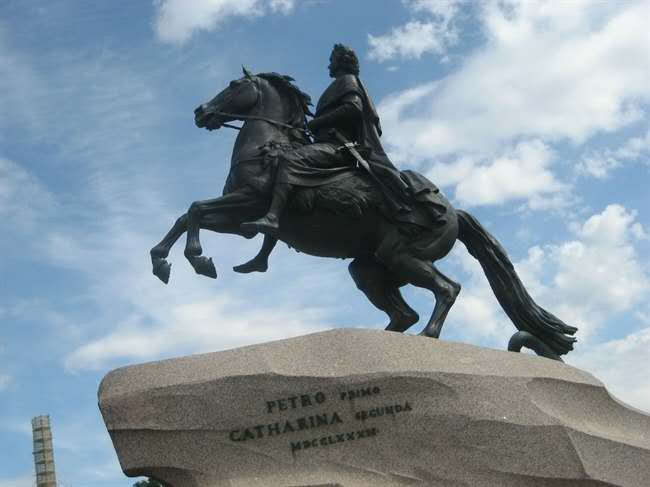 彼得大帝青銅騎士像位于涅瓦河南岸,它是俄羅斯圣彼得堡的象征,1782年法國著名的雕塑家法爾科耐在這里做出了它一生中最完美的杰作。以武力奪取沙皇彼得大帝青銅騎士像寶座的德國女人葉卡捷琳娜二世為了證明她是彼得大帝正統的繼承人,修建了這個彼得青銅騎士像。