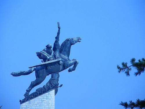 朝鮮千里馬銅像矗立在萬壽臺的丘崗上,是1961年4月 15日,在偉大領袖金日成同志的49壽辰之際建立的。座基是用360多種2,500多塊不同規格的花崗巖壘起來的,銅像為一匹伸展雙翅的騎有工人、農民的 “千里馬”。