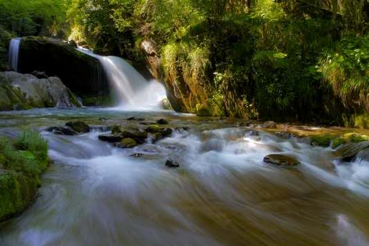香溪源是一條十分美麗的小溪。它發源于神農架山區,流過石灰巖裂縫,經洞穴過濾沉淀,“水色如黛,澄清可掬”;由北向南注入長江,交匯處清濁分明,相映成趣。傳說昭君的珍珠曾失落溪中,故溪水四季湛藍碧透,水味含香。