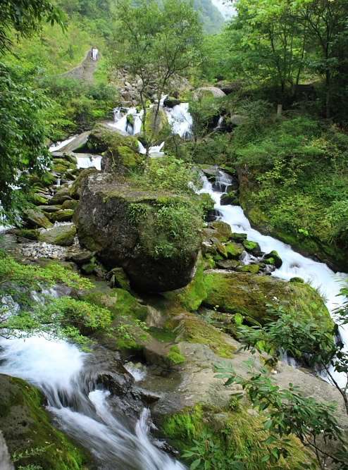跳架溝位于金猴嶺以東,由鄭家包北西500米處暗河泉流形居,泉流在溝腦一深潭中涌出,清亮碧綠,穿林越谷瀉入木魚河,它是香溪的主要源頭。這里水質純凈,含人體所需多種微量元素,飲用甘涼。香溪源景區北距木魚鎮4公里。香溪源是長江西陵峽北岸的一條重要支流,它是一條地下河,發源于海拔2800米的風景埡。香溪源東源出于龍口河、長方河,流長45公里,匯入興山縣東河后注入香溪;西源出于木魚河、當陽河、九沖河、流長68.5公里,匯入興山西河后注入香溪。此處香溪源指的是西源,它源于木魚河中上游西岸的跳架溝。跳架溝位于金猴嶺以東,由鄭家包北西500米處暗河泉流形居,泉流在溝腦一深潭中涌出,清亮碧綠,穿林越谷瀉入木魚河,它是香溪的主要源頭。這里水質純凈,含人體所需多種微量元素,飲用甘涼。