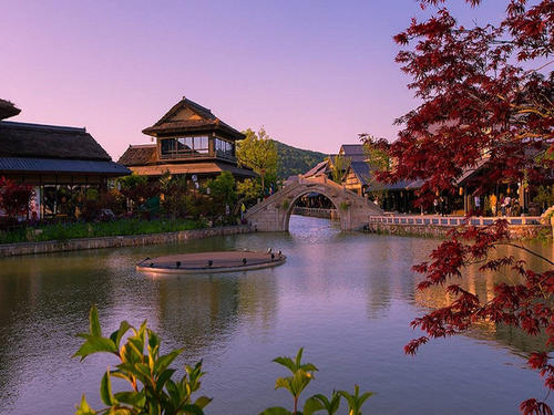 “拈花灣”的命名,一方面源于靈山會上佛祖拈花而迦葉微笑的經典故事拈花一笑,同時也緣于它所在的地塊形似五葉蓮花的神奇山水。小鎮整體建筑風格與日本奈良雖然相似,但其實是源自于唐朝時期的建筑結構,融入了中國江南小鎮特有的水系,打造出了一種獨有的建筑風格,使得整個小鎮沉浸在美輪美奐的意境中。