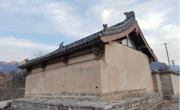 正殿 正殿建于石質(zhì)臺基上,面闊三間、進深四椽,梁架為三椽栿對前搭牽通檐用三柱,單檐懸山頂,灰板瓦屋面。柱頭直接置櫨斗不設普柏枋,闌額至角柱不出頭,柱頭斗栱四鋪作單下昂,無補間鋪作,殿內(nèi)存清代工筆淡彩壁畫53.7平方米,內(nèi)容為西游記人物和四大天王等。殿東側山墻上嵌石碣1方,記載清光緒二年(1876)重修情況。