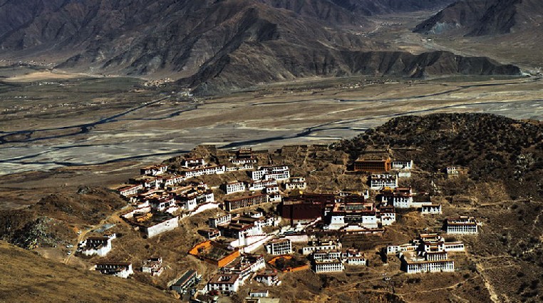 甘丹寺建于明永樂七年(1409年),位于拉薩以東40千米處,達孜縣境內,拉薩河南岸海拔3800米的旺古爾山和貢巴山的坳至山頂處。黃教創始人宗喀巴15世紀在藏地推行宗教改革,甘丹寺便是他親自建立的格魯派第一座寺院。