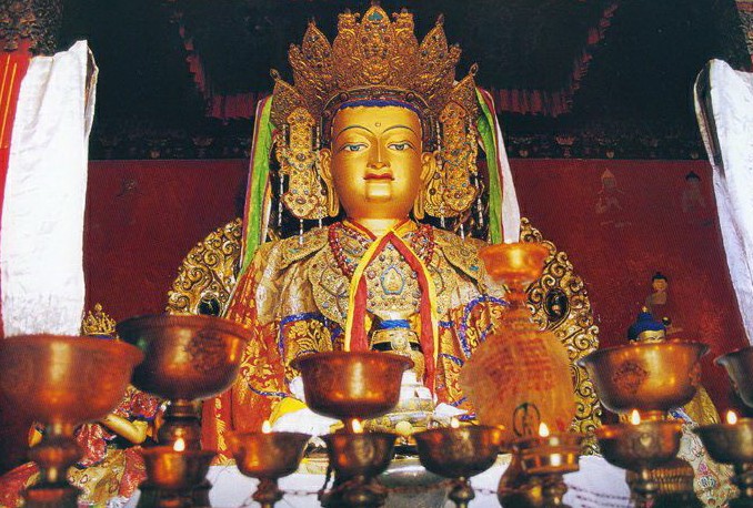 根據(jù)五世達(dá)賴?yán)锼摹洞笳阉履夸洝返葧涊d:小昭寺主神殿原來主供文成公主從長(zhǎng)安帶來的釋迦牟尼12歲等身像,大昭寺主神殿原來主供尼泊爾的尺尊公主從加德滿都帶來的釋迦牟尼8歲等身像。松贊干布逝世后,遵照文成公主的旨意,大昭寺和小昭寺釋迦牟尼等身佛像進(jìn)行了對(duì)換。