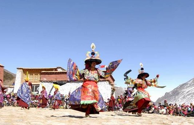 作為藏北重要的旅游勝地,熱振寺還有一些非同一般的“看點”,不可錯過。如每年藏歷4月15日的“迎鳥節(jié)”和7月15日的“帕邦唐廓節(jié)”。“帕邦唐廓節(jié)”最初只是純宗教性的轉(zhuǎn)經(jīng)活動,后來逐漸發(fā)展成為除宗教活動外,農(nóng)牧民進行各類商品交換,開展文娛活動的綜合性節(jié)日。“迎鳥節(jié)”是根據(jù)熱振寺當?shù)氐臍夂驐l件決定的,每當舉行杜鵑鳥供奉日時,僧人達百余人,敬獻供品若干,并且還要舉行隆重跳神活動,以求賜福。