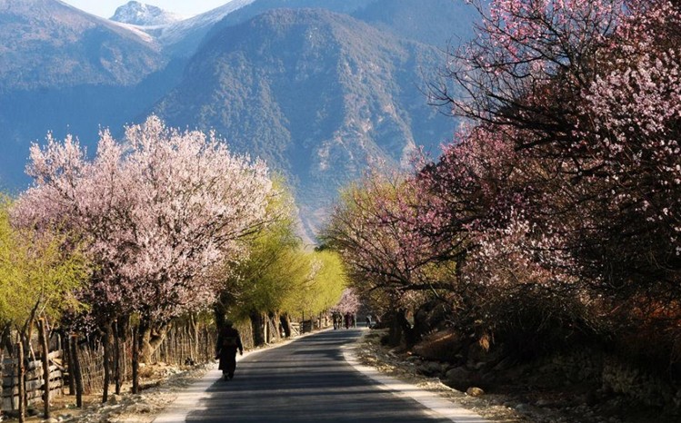 在林芝縣城東南方向約5公里處,有一片天然野生桃林,人們稱它為桃花溝。桃花溝三面環山,高處有水源,四周林木蔥蘢,終年碧綠蒼翠,間有流水,清澈見底;溝內野桃鱗次櫛比,林間鳥雀歡噪,既靜僻又幽雅,不失為一處難得的大自然樂園和桃的砧木基地。