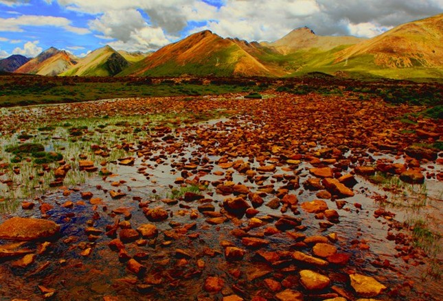 思金拉措,藏語即:具有威力的神湖,當地群眾稱為“財主百龍之王”居住的神湖。位于墨竹工卡縣日多鄉東南邊,距川藏公路(318國道)約6公里,距縣城66公里,距拉薩市區124公里,海拔4500米。地形猶如聚寶盤,四周群峰簇擁。藥材植物就多達幾十種,其中有:雪蓮花、金腰子、冬蟲夏草、黃連花等珍貴的上等藥材。山間隨處可見雪雞、雉鶉、巖羊、鹿、高山嶺羊、香獐等,有時還會看見狼、馬熊、豹等野獸。
