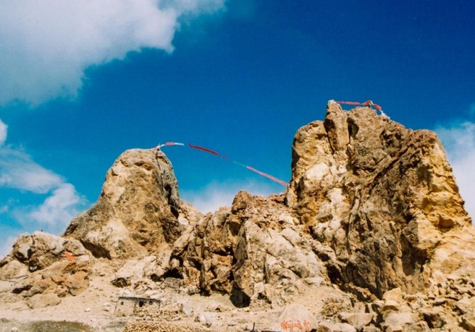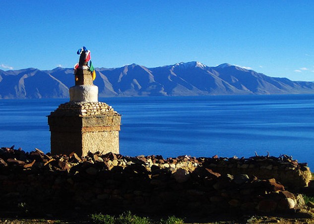 當(dāng)惹雍錯(cuò)被群山簇?fù)恚习哆_(dá)爾果山東側(cè)有一缺口。據(jù)傳當(dāng)惹雍錯(cuò)當(dāng)初是個(gè)魔鬼湖,后來象雄第一代王子也即是苯教的締造者敦巴辛繞制服了湖中的魔鬼,成為了神湖。達(dá)爾果山一列有七峰,峰頂終年白雪覆蓋,如七個(gè)戴了白帽的巨人并排站立忠實(shí)地守護(hù)著當(dāng)惹雍錯(cuò)。這里山光水色簡(jiǎn)直就是圣景,它和當(dāng)惹雍錯(cuò)—起被人們奉為苯教的神山圣湖,其地位與佛教所認(rèn)為的世界中心的崗仁波齊和瑪旁雍錯(cuò)身價(jià)相等,且傳說湖底是相通的。