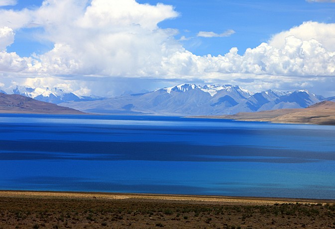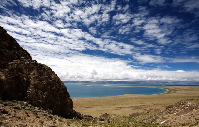 當惹雍措是藏北著名神湖,它位于那曲地區的一個深陷的湖盆底部,它與當惹雍措相毗鄰。當惹雍措湖面形似一金剛杵,上圓中細下部長,四面群山環抱,南面的達爾果山山頂積雪終年不化。實際上當窮措與當惹雍措是在同一個湖盆之內,湖水未枯以前本是同一湖泊。這正是當窮措名字的來歷,藏語里當窮措即小的當惹雍措之意。