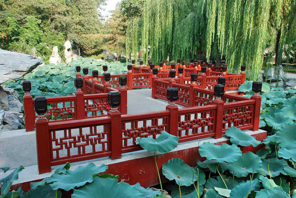 由紅學、古建、園林、清史、民俗等多方面的專家、學者設計建造的古典園林。始建于1984年,1986年部分對外開放,1989年全部開放。位于北京宣武區南菜園護城河畔。全園面積12.5公頃,建筑面積8000多平方米,新拓水系2.4萬平方米,草坪500平方米,種植各種樹木3 萬余株,堆山疊石6萬立方米 。園內的建筑 、山形水系、植物造景 、室內陳設、小品點綴等都盡力忠實于原著的時代風情和具體描繪,再現了文學大師曹雪芹筆下《紅樓夢》中的官府園林風采。全園包括庭園景區7處、版權所有山東聊城聊之旅國際旅行社有限公司,轉載必究!自然景區3處、佛寺景區1處、殿宇景區1處,總計景點40多個,主要景點有:大觀園正門、曲徑通幽處、沁芳亭橋、怡紅院、瀟湘館、秋爽齋、稻香村、滴翠亭、西街門、櫳翠庵、凹晶溪館、凸碧山莊、大觀樓、暖香塢、蘆雪庭、綴錦樓、紅香圃、花溆、蘅蕪苑、顧恩思義殿等。