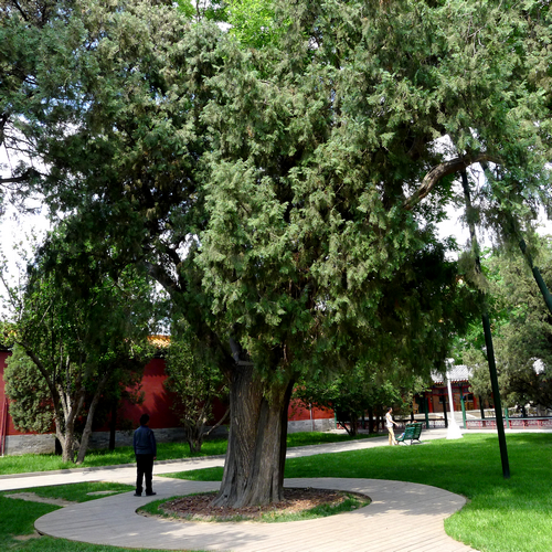 公元十世紀(jì),北京曾是遼王朝的陪都“南京”,這里是當(dāng)時(shí)都城東北郊外的“興國(guó)寺”寺址。這幾棵古柏就是遼寺的遺物。其中干周最大者,達(dá)一丈九尺多。