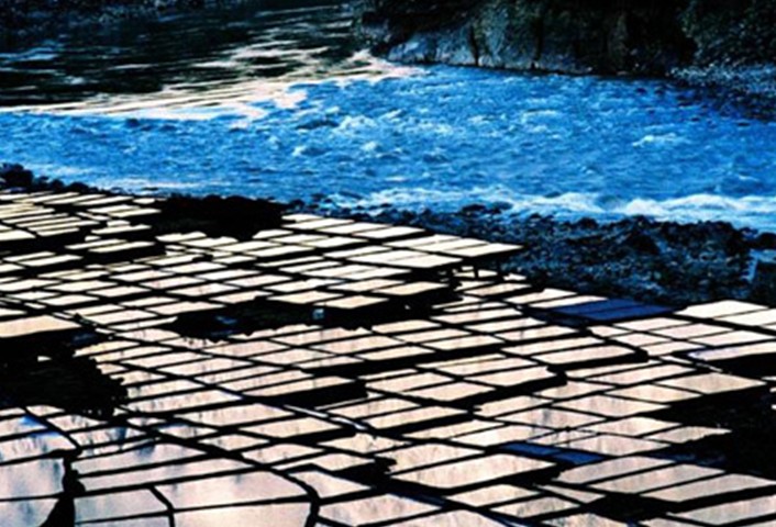 鹽井自古就有產(chǎn)鹽的歷史,而鹽田又成為這里獨(dú)有的一道人造景觀。所謂的鹽田,其實(shí)是在洶涌澎湃的瀾滄江邊搭建的一些土木結(jié)構(gòu)的平臺。順著鹽田之間的小道下坡,鹽水井就挖在江邊。這兒的鹽水井有的深近10米,工人們身背圓柱形的木桶,將鹵水存儲(chǔ)在鹽田邊的槽溝里,其他的工人將鹵水從槽內(nèi)舀出倒入鹽田里。經(jīng)過一天日頭的暴曬和江風(fēng)的吹拂,第二天,鹽田里就會(huì)結(jié)晶出白色的鹽粒了。 依山搭建層層的鹽田氣勢雄偉,鹽民們沿著祖先的足跡,走在崎嶇險(xiǎn)峻的小道上辛勤地勞作,在延續(xù)生命的同時(shí)也創(chuàng)造著世界上獨(dú)特的景觀。