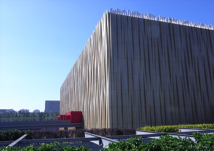 資格賽館是國(guó)內(nèi)首個(gè)半封閉半開敞的全空調(diào)比賽空間。其外層幕墻與樓面之間設(shè)置了鋁合金開窗. 外側(cè)幕墻上下兩端分別設(shè)置了通風(fēng)口. 上面為排風(fēng)口、下面為進(jìn)風(fēng)口。在雙層幕墻之間安裝有溫度感應(yīng)裝置. 可以根據(jù)溫度的變化, 把冷風(fēng)和熱風(fēng)與室內(nèi)空氣進(jìn)行交換, 實(shí)現(xiàn)了室內(nèi)部分的全空調(diào)環(huán)境。