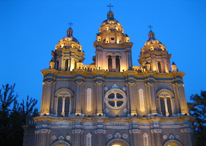 是北京四大天主教堂之一。由意大利籍利類思和葡萄牙籍安文思兩位傳教士創(chuàng)建。明末,2人在四川傳教。清初被清兵虜至北京,在肅王府當差,順治十二年(1655),福臨賜給他們一所宅院和一塊空地(即今址),他們即在空地上建筑一座教堂,即北京城內第二座圣堂(第一座為南堂),也就是最早的東堂。東堂院內,中間為天主堂,坐東朝西,共約30間,堂頂立十字架3座,中間大,兩旁小。堂內有18根圓形磚柱支撐,兩側掛著耶穌受難等多幅油畫。堂南、西有教室,東有一院,內有花池、平房、樓房,為神父住處。東堂內曾保存有多幅宮廷畫師郎世寧繪的圣像,嘉慶十二年(1807年)失火后廢止。1884年,重建羅馬式大堂,在義和團運動中又被燒毀。1904年,用“庚子賠款”重建(法國和愛爾蘭兩國合建),即現(xiàn)在的東堂。東堂院內,中間為天主堂,坐東朝西,面闊25米,共約30間,坐落在青石基上,堂頂立十字架3座,中間大,兩旁小。堂內有18根圓形磚柱支撐,直徑65厘米,柱礎為方形,堂內兩側掛著耶穌受難等多幅油畫。版權所有山東聊城聊之旅國際旅行社有限公司,轉載必究!占地近1萬平方米。為東城區(qū)重點保護文物。 北京王府井大街的北段正在進行改造,原先圍繞神秘教堂的圍墻被拆除,吸引了眾人的目光。灰色的歐式尖頂建筑因其古老而越發(fā)透出神秘,新鋪就的門前廣場在綠樹環(huán)繞中更具濃郁的人文色彩。在周圍的現(xiàn)代化建筑映襯下,王府井天主教堂成了這條大街上的新景點。占地8000多平方米的教堂門前廣場已鋪裝完畢,廣場兩側設有座椅可供行人小憩。在教堂南側,占地1000多平方米、王府井大街上最大的綠地馬上就要露面,它將是一座花卉、灌木、喬木立體種植的花園。由于以玫瑰為主,它有一個好聽的名字——玫瑰園。從玫瑰園流出的一股人造泉水,因為依廣場南側層疊而下,所以名為“疊泉”。整個教堂廣場高出地面1米有余,使其更顯與眾不同。據說,由于完全按西式天主教堂設計,玫瑰園下還會有一個葡萄酒窖。
