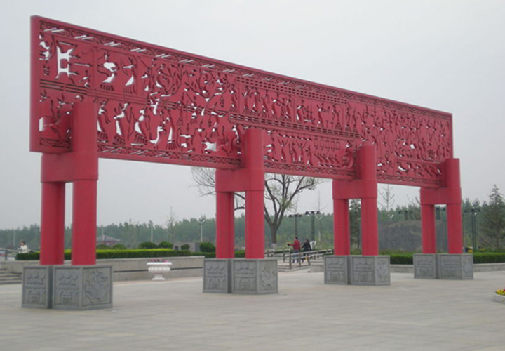 廣場浸染了獨特的三國文化色彩,挖掘了平原縣獨具特色的三國文化,再現了恢宏絢麗的漢魏文化特征,敘事了劉備坐平原的典故傳說。雕塑布局以貫穿南北大門的中軸線雕塑和環湖分布的群組雕塑兩條敘事線索展開。中軸線的雕塑設計突出了平原從過去到現在的縱向發展文脈,以此體現出對歷史的回顧和對未來的展望。環湖展開的雕塑設計再現了漢魏時期科技、文化、民風的歷史畫卷,版權所有山東聊城聊之旅國際旅行社有限公司,轉載必究!把豐富的歷史知識元素通過賞心悅目的藝術表現形式,與游人形成了親切自然的互動交流。