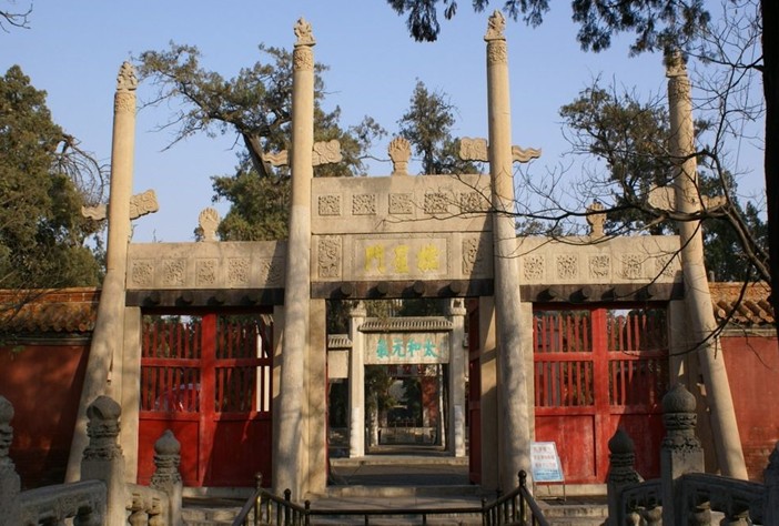據《孟子》記載:“孟子曰:‘伯夷,圣之清者也;伊尹,圣之任者也;柳下惠,圣之和者也;孔子,圣之時者也。’”意思是說,在圣人之中孔子是最適合時代的。據此,清世宗于雍正八年(1730年)欽定孔廟正門名“圣時門”。圣時門始建于明永樂十三年(1415年),3間,弘治年間擴為5間中設拱門3 券,碧瓦歇山頂,四周是深紅的墻皮,券內是杏黃的墻里,前后石階上各有石刻龍陛。由拱門內望,令人有深邃莫測之感。