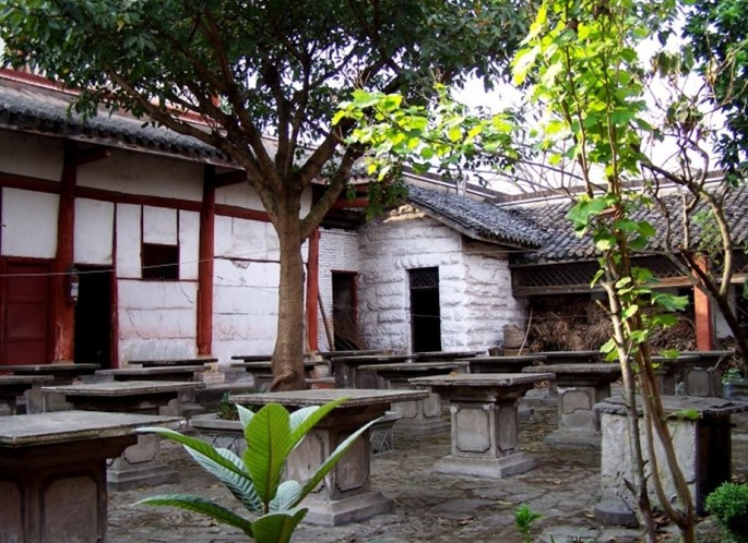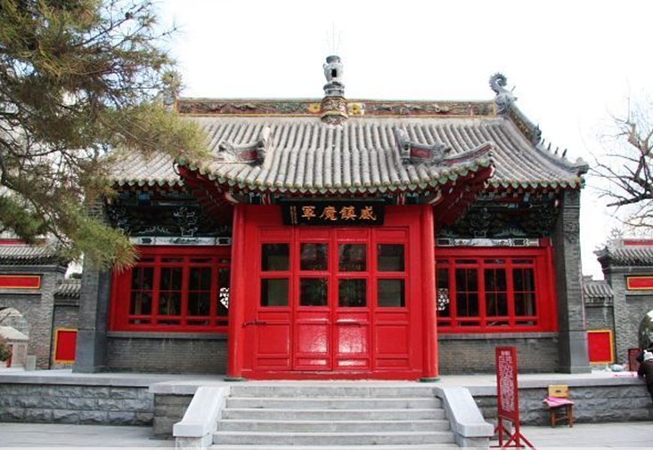 整個(gè)廟宇進(jìn)深三層。第一層是彌勒殿,殿內(nèi)供奉彌勒佛坐像,殿前有一座漢白玉石碑,碑文記載著建廟的詳細(xì)經(jīng)過(guò);第二層是大雄寶殿,這是整個(gè)廟宇的中心,也是最大的一座建筑;第三層是西方三圣殿,該殿為二層歇山式建筑,樓上為藏經(jīng)樓,樓下供奉阿彌陀佛、大勢(shì)至菩薩和觀世音菩薩三圣像。西方三圣殿的兩側(cè)是大雄寶殿的后院配殿,其中東配殿是觀世音菩薩殿,西配殿是地藏王菩薩殿。與前兩個(gè)院落相比,這里松柏參天。鳥(niǎo)語(yǔ)繞梁,營(yíng)造出一種古樸、玄遠(yuǎn)的宗教氛圍。