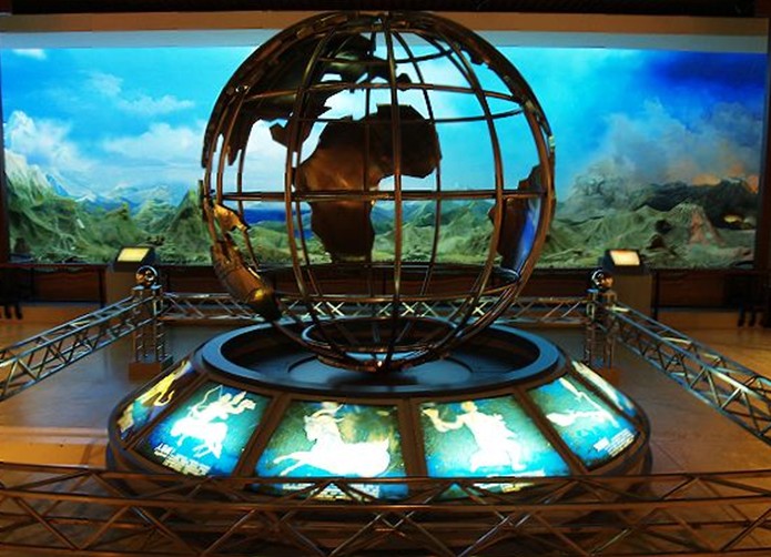 大連自然博物館的展覽是以“自然與人”為主題進(jìn)行設(shè)計(jì)的。當(dāng)觀眾步入館內(nèi)的陳列大廳時(shí),首先躍入眼前的是由肯尼斯•貝林先生于2003年捐贈(zèng)的非洲象,肩高3.0米,體長約5.1米,尾長1.5米,體重約6000公斤。后面是一幅長22米,高3米的大型浮雕,他們將“自然與人”藝術(shù)而完美的融合在一起,氣勢(shì)宏大而壯觀,充分體現(xiàn)了濱城特色和陳列展示主題。