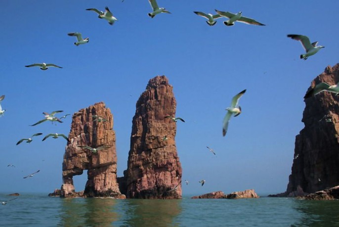 島上大樹、小草、灌木叢漫無目的地長,和緩的山坡上種植著各種農作物,鄉間小路崎嶇蜿蜒,路邊的野花自由而放肆地開放。隨便走走,就能看見幾處極好的天然浴場,不遠的礁石上成群的海鷗或嬉戲或盤旋。親近黃海明珠,體會海島自然,享受垂釣生活。