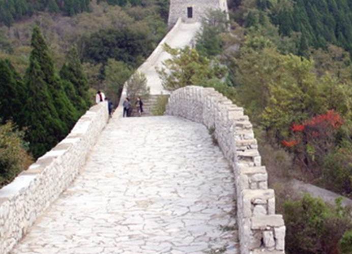 距今2500年的齊長城又名長城嶺、大橫嶺,是齊國為防御魯、楚及中原各國的軍事入侵而建,也是齊國和魯國的分界線,《管子》曰:“長城之陽,魯也;長城之陰,齊也”。齊長城自這里開始,向東經雙泉、馬山、萬德、歷城、泰安、淄博,至青島市冀島區東于家河村東北海濱,橫貫18個縣、市(區),穿越1518座山峰,全長1237.8華里,史稱“千里長城”,比秦長城早四百余年,堪稱“中國長城之父”,也是我國古代建筑最雄偉的代表。孟姜女哭長城是婦儒皆知的故事,這里就是孟姜女哭長城之地,長清區萬德鎮長城村就是孟姜女的故里,且當地還有孟姜廟遺址。當年孟姜女的丈夫在新婚第三天便被拉去修長城,一個月后,孟姜女尋夫騎馬來到齊長城,在跑馬嶺上下馬后,從城中打聽其夫,正碰上本村的一個人,告訴她,她的丈夫在西城門壘長城時累死了。 尸體被埋在長城下。孟姜女聽言大哭直奔西城門。孟姜女比較健壯(從她下馬處的腳印可以看出),守城的士兵阻攔,孟姜女一氣之下邊哭邊扒,扒倒了齊長城,現在還保留著原樣。