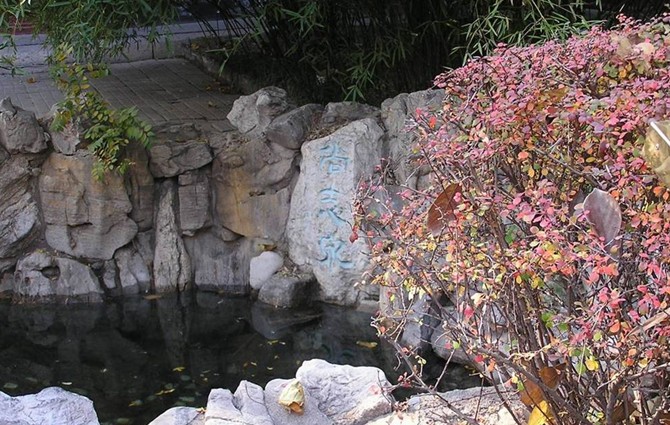 老金線泉即金《名泉碑》上所列的金線泉,位于趵突泉東北側(cè),尚志堂和魚(yú)展室之間。明《七十二泉詩(shī)》、清《七十二泉記》也著錄版權(quán)所有山東聊城聊之旅國(guó)際旅行社有限公司,轉(zhuǎn)載必究!。泉池石砌,方形,池內(nèi)北壁,有一長(zhǎng)方條石,上刻隸書(shū)“老金線泉”4字,系當(dāng)代濟(jì)南書(shū)法家李鐘余書(shū)。池西青松夔石相映,池中泉水清澈,青藻浮動(dòng),錦魚(yú)潛游。
