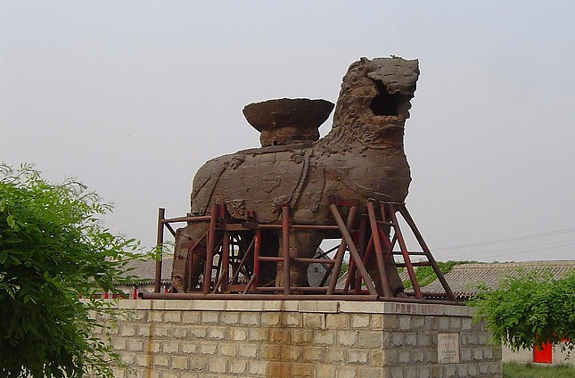 滄州鐵獅子位于滄州市政府駐地東南偏北16.5公里。坐落在東關(guān)村西0.5公里處。鐵獅身高5.78米,長(zhǎng)5.34米,寬3.17米,體重約50噸。背負(fù)巨盆相傳是文殊菩薩蓮坐,獅身向南,頭向西南,兩左腳在前,兩右腳再后,呈前進(jìn)狀,姿態(tài)雄偉,昂首闊步,徐徐如生鐵獅是我國(guó)大型的驚巧鑄鐵工藝。也是我國(guó)著名發(fā)源的古跡。距今已有一千多年的歷史,它充分的顯示出我國(guó)古代勞動(dòng)人民的智慧和藝術(shù)才華。