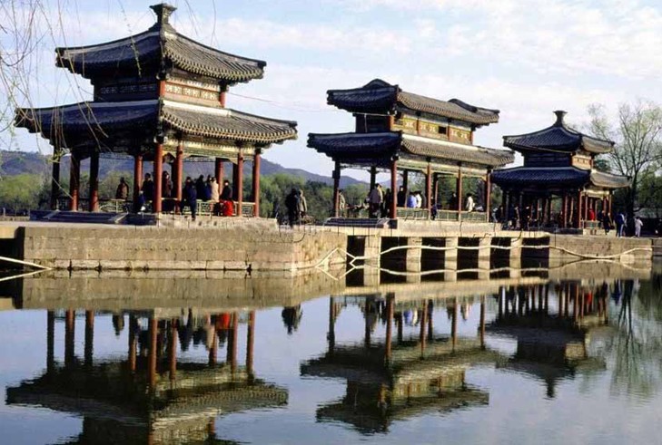 其中,清音閣:俗稱大戲樓。與北京圓明園同樂(lè)園中的戲臺(tái)同名,與現(xiàn)存故宮暢音閣、頤和園中德和園大戲樓形式相近。閣高三層,外觀雄偉。結(jié)構(gòu)精巧,閣內(nèi)布景逼真,音響效果很好。清音閣平面方三間,樓閣三重,舞臺(tái)寬17米,進(jìn)深15米。清音閣的三層樓,上層稱“福臺(tái)”,懸掛“清音閣”三字御制匾額 中層名“祿臺(tái)”,額題“云山韶渣”;下層曰“壽臺(tái)”,額題“響葉鈞天”,取“福祿壽三星吉祥”之意。壽臺(tái)的天棚上有天井,地板下有五口地井,其中除一口水井有水外,其余均為枯井。在舞臺(tái)下設(shè)置這些地井,是為了增強(qiáng)舞臺(tái)上的音響共鳴效果。有時(shí)也配合劇情,適當(dāng)使用舞臺(tái)設(shè)施,如由三樓布成天降大雪情景,佛自天降也是從三樓懸系下來(lái)的,而菩薩渡海、妖魔破土而出則從舞臺(tái)下的地井內(nèi)上來(lái)的。水井也能配合劇情引水上臺(tái)。