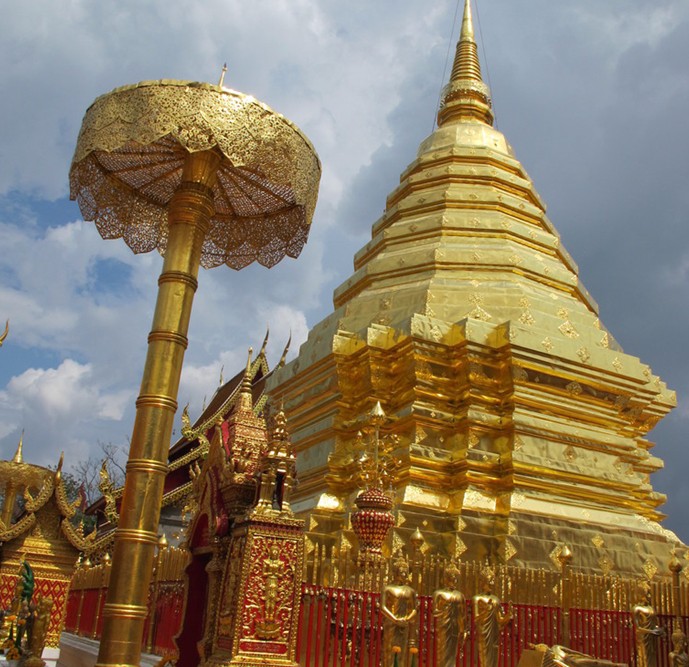 泰國清邁位于曼谷北方海拔305米的山谷中,有“北方玫瑰”之稱,山清水秀景色絕美,且人文古跡眾多,深受國內外游客青睞。最著名的是雙龍寺,建于十六世紀,寺院由裝飾美麗的建筑和藍納式佛塔組合而成,青山環抱莊嚴肅穆,鎮寺之寶是佛祖的一粒舍利子。雙龍寺附近有苗族村,這個村既是一個景點也是苗族后裔生活工作的地方,他們保持有自己的語言,傳統服裝及手工藝品,是古少數民族的一個活標本,游人身臨其境,可采風到不少少數民族風情,同時品嘗到當地特殊小吃。