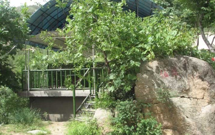 位于山莊文津閣南,為“乾隆三十六景”第二十九景。乾隆十 六年(1751)年,乾隆南巡,見蘇州寒山范氏山園中千尺雪的瀑布,動靜皆宜。后于京城西苑、薊縣盤山靜寄山莊和避暑山莊同時仿建,同名千尺雪。它是將山溪引至山前,利用落差,造出“懸流噴瀑”、“寒光四射、灑然晴晝玉花”效果,此景是以瀑布取名,以聲取景、聽景的典型杰作。