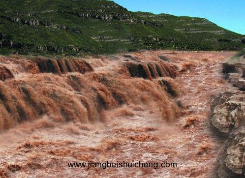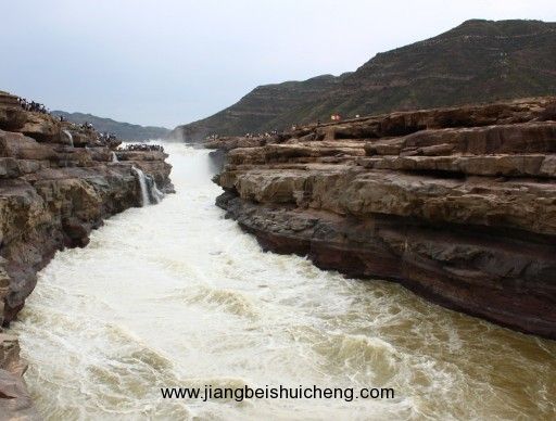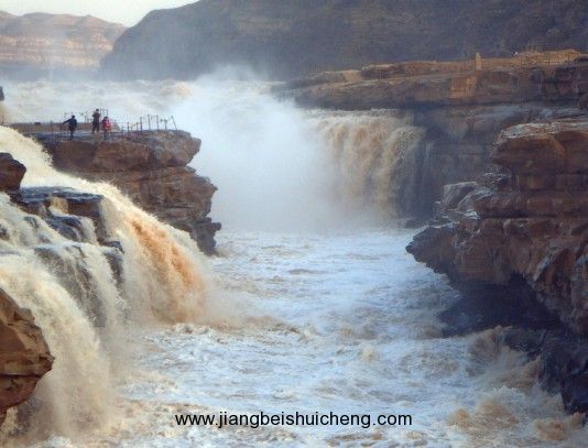 黃河壺口瀑布位于宜川縣城以東35公里,吉縣城西45公里處的晉陜峽谷黃河河床中,已成為世界上最大的黃色瀑布,因其氣勢雄渾而享譽中外。 壺口瀑布,是由于黃河流至壺口一帶,兩岸蒼山夾峙,把黃河水約束在狹窄的黃河峽谷中,河水聚攏,收束為一股,奔騰呼嘯,躍入深潭,濺起浪濤翻滾,形似巨壺內(nèi)黃水沸騰。巨大的浪濤,在形成的落差注入谷底后,激起一團團水霧煙云,景色分外奇麗。站在河邊觀瀑,游人莫不唱起“風在吼,馬在叫,黃河在咆哮”這威武雄壯的歌聲。