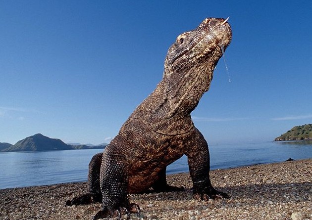 科莫多巨蜥,又叫科莫多龍,是現(xiàn)存種類中最大的蜥蜴,分布在印度尼西亞小巽他群島的科莫多島和鄰近的幾個島嶼上。科莫多巨蜥瀕於絕種,現(xiàn)已列為保護對象。科莫多巨蜥外觀十分丑陋可怖,皮膚粗糙,生有許多隆起的疙瘩,無鱗片,黑褐色,口腔生滿巨大而鋒利牙齒。科莫多巨蜥體型巨大,成年雄性科莫多巨蜥大約有3米長,136千克重。它撲食動物時,兇猛異常。奔跑的速度極快。版權所有山東聊城聊之旅國際旅行社有限公司,轉(zhuǎn)載必究!它那巨大而有力的長尾和尖爪是撲食動物的“工具”。科莫多巨蜥口中還有許多的細菌;它以島上的野豬、鹿、猴子等為食。只要成年的巨蜥一掃尾巴,就可以將三歲以下的小馬掃倒,然后一口咬斷馬腿,將馬拖到樹叢中吃掉。吃不完時,它還將余下部分埋在沙土或草里,餓時可吃。生活在科莫多島上的野鹿、野豬、山羊和各種猴子,見到巨蜥就逃。盡管科莫多巨蜥非常可怖,但只是偶爾攻擊人類。它們主要以腐肉為食,每天出洞到幾公里以外的地方覓食。