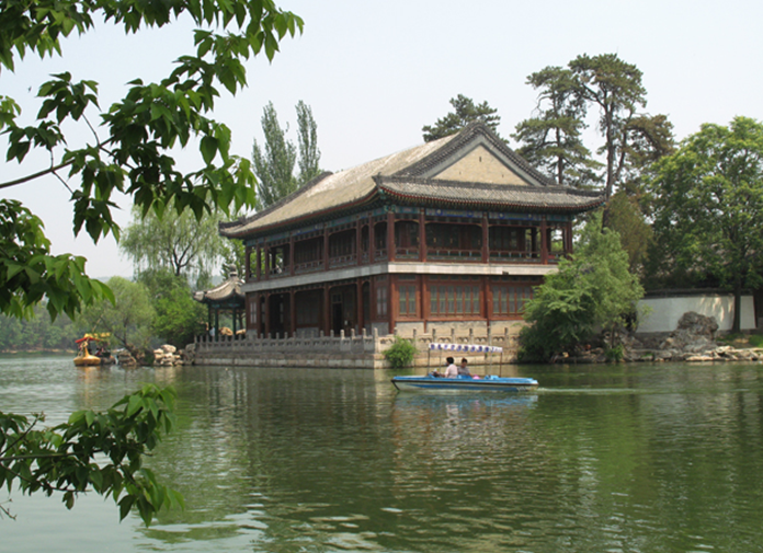 從外觀上看,文津閣是一個二層樓閣,實際上是三層樓閣,中間有一暗層。暗層全用楠木造壁,能防蟲蛀,是藏書之處。此閣在設計上按《易經》中“天一生水”、“地六成之”的說法,將一層的六楹隔為六個單間版權所有山東聊城聊之旅國際旅行社有限公司,轉載必究!,而將頂層的六楹相通為一大間,用“地六”、“天一”來克火。文津閣有圍墻環繞,坐北朝南,三面臨水,從南往北為門殿、假山、水池、文津閣、碑亭。閣的東北部有水門與山莊水系相通,閣前池水清澈,人在閣前特定位置向池中望去,只見池中有一彎新月,隨波晃動,而天空卻是艷陽高照。 原來這是造園家在池南的假山上,開出一個半圓形如上弦月的縫隙,利用光線,在水中形成下弦月的倒影,構成“日月同輝”的奇特景觀。水池南岸是一座造型別致的假山,怪石嶙峋,氣勢雄渾。假山占地約800平方米,用石3279立方米,由漿石和雞骨石等堆疊而成。假山石洞,前后各有兩門相通,結構也頗具匠心。洞內山石遮掩,可分廳、堂、窗、孔、穴等,洞壁用雞骨石鑲嵌,幽深曲折。有幾個大小不等的窗孔,透進幽幽的光線,使洞中的峭壁怪石若隱若現。山上橫嶺縱峰,溝橋崗壑,各自爭奇。有棒槌山、羅漢山、雙塔山等十大名山的縮影,更有“十八學士登瀛洲”的造型,還有仿米芾“寶晉齋”的園林布局。文津閣東為碑亭,四角攢尖頂,上覆黃琉璃瓦,內豎石碑一座,通高5.34米,碑正面鐫刻著乾隆題《文津閣記》,其余三面刻有乾隆作的3首詩。