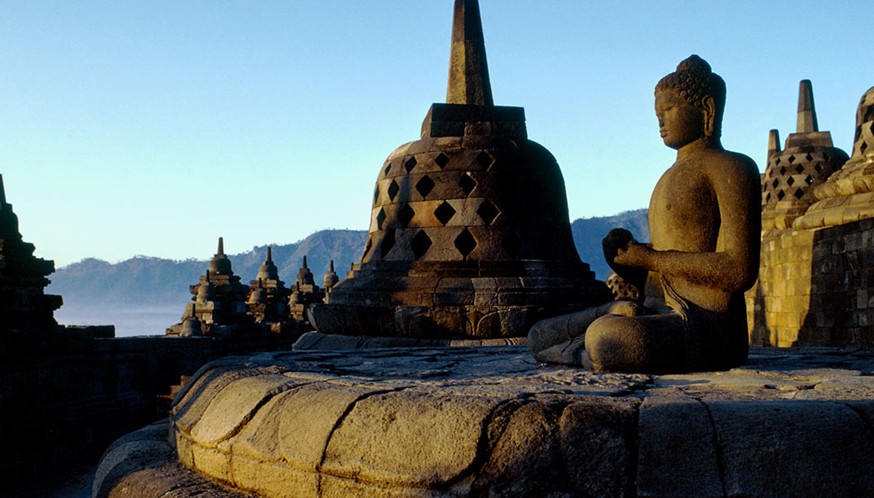 婆羅浮屠是世界上面積最大的佛教建筑遺跡,與中國的長城、印度的泰姬陵、柬埔寨的吳哥窟并稱為古代東方四大奇跡,是世界文化遺產。