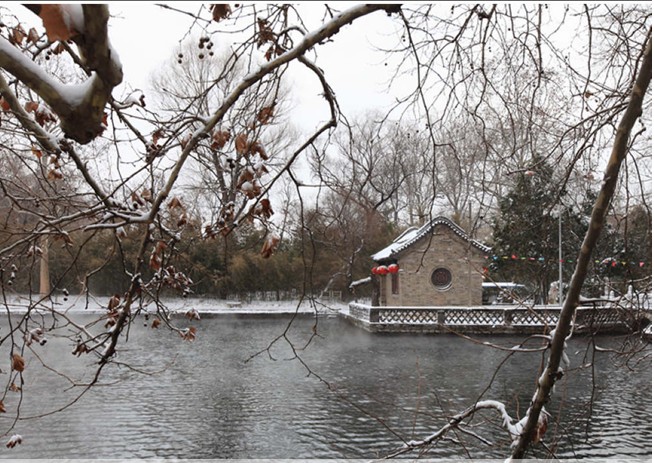 雪化橋 鑄劍池東原有一青石拱橋,是游人進(jìn)入老龍灣的通道,造型優(yōu)美,橋身觸及水面,縱然是三九隆冬,水溫亦能暖透橋面,每逢冬天降雪,雪花落到橋面就被溶化,故名雪化橋。