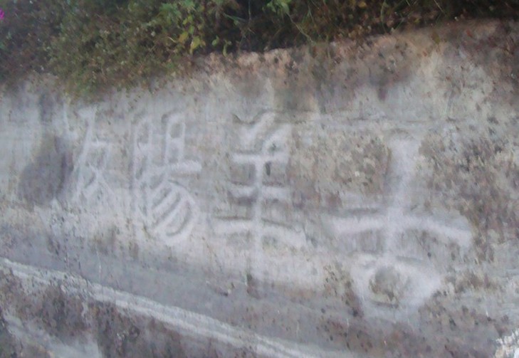 “古羊腸坂”題刻:在古碗城西南約50米,坂道西邊的二級(jí)峭壁上,高0.8米,寬3米,有清同治間摩刻的“古羊腸坂”四字,每字0.5米見(jiàn)方。