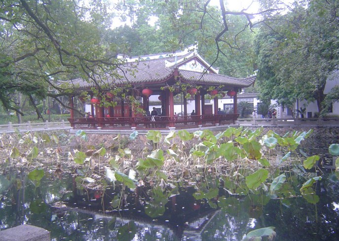 在開(kāi)化嶼東,系閩中詩(shī)人紀(jì)念堂,明正德年間(1506-1521年)詩(shī)人傅汝舟營(yíng)建。招詩(shī)友高濲等同來(lái)隱居。宛在堂木構(gòu)三楹,以詩(shī)名“孤山宛在水中央”為堂名。一時(shí)詩(shī)人云集,傳為佳話(huà)。清康熙四十一年(1702年)改建為湖心亭。乾隆十三年(1748年)黃任倡議復(fù)建,在堂中設(shè)立詩(shī)龕,作為福州詩(shī)壇同人吟詩(shī)聚會(huì)之地。后來(lái)堂為洪水沖毀。道光四年(1824年)重建。道光七年(1827年),林則徐丁父憂(yōu)歸家,重浚西湖,借宛在堂為辦公場(chǎng)所。1914年,西湖辟為公園后,宛在堂修葺一新。此后,春秋皆有雅集,名人墨客薈萃吟詠。