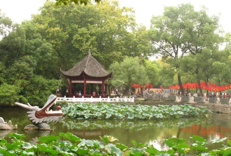 東端登陟龍山,巨石夾道,山腹摺疊,行至圓照庵下,迎面的蒼巖上有醒目的摩巖石刻“龍山第一剎”。 大龍山,乃道光丁亥馬香谷楷書。圓照庵建于宋代,其規模宏偉,廟宇三幢,有樓閣亭塔。庵后原有一高塔,名為無量塔,建于唐代。只是歲月滄桑,不幸塔庵毀于兵災,而今惟存遺跡,尚有碑記可考。庵前有兩棵四百余年的古銀杏,粗圍四米,高聳挺拔,茂盛可觀。附近新建了電視轉播臺,給這一古樸靜雅的勝境平添了現代化氣息。大龍山圓覺塔,高8.5米,共七層,地面六層,地下一層。由165塊花崗石疊成,為現存完好的唐代建筑。龍山有很多泉眼,最著名的是龍泉,又稱龍湫,泉深無底,傳說直通長江。龍湫,相傳是龍王巡游人間的沐浴處。泉四周石壁峭立,高五、六仞,石罅中長有秀竹古松;泉北有高峰聳立,涌泉、飛瀑出自其間,終年奔流不息,懸崖上有一巍石,崖壁刻有明司禮黃熙纘所書“忘歸”二字。古人的題詞石刻給這里增添了迷人的魅力。游人至此,懷古之情油然而生。