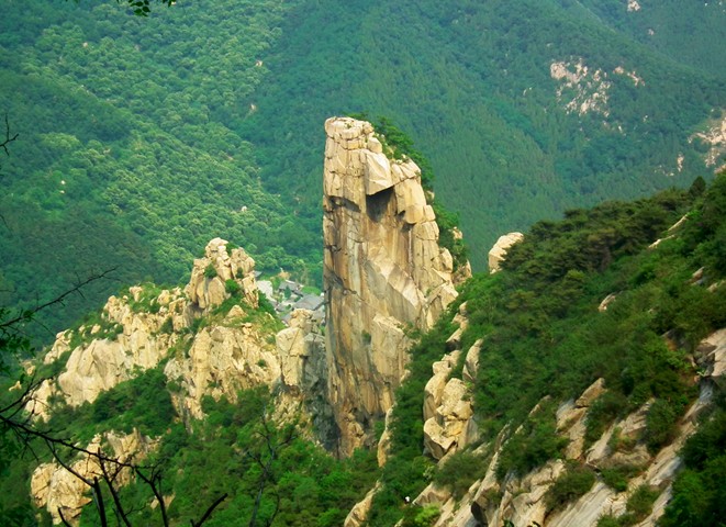 扇子崖位于泰山西溪西側(cè)的扇子崖,奇峰突兀,高聳峻峭,形如扇面,故名。崖上有明人楊博題刻摩崖石刻“仙人掌”。崖西有鐵梯,攀援可登崖巔,北眺龍角山,九女寨歷歷在目,西望傲徠峰盡收眼底。向東俯視,龍?zhí)端畮?kù)宛若鑲嵌在西溪的一顆璀璨的明珠,閃閃發(fā)光。清人孫寶僮有詩(shī)云:“劍峰怒刺天,積鐵拔千仞;俯臨鬼谷幽,旁倚丈人峻”,的確寫(xiě)出了扇子崖的風(fēng)韻。扇子崖峰極險(xiǎn)峻,赤眉軍曾就頂設(shè)望哨。明代舉人王無(wú)欲筑室崖巔,后又結(jié)茅其下,名西山別業(yè)。民間有“打開(kāi)扇子崖,金銀財(cái)寶往家抬”的傳說(shuō)。1990年,依崖鑿階,修筑云梯,以便攀登。[1]峰崖交接處為山口,前有扇子崖廟,殿西有地母宮,再西為太陽(yáng)廟。自正殿前沿階下谷,有真武洞,清光緒年間建,題額“玄天上帝”,內(nèi)祀真武神及金童玉女。前為會(huì)仙庵舊址,今房基、石廟尤存。又東路旁有巨石,上有清康熙初年線(xiàn)刻一老僧坐蓮修身。廟南隔溪相望有弄水巖,雙峰崛起,澗水東流,至西百丈崖下注西溪。山口后是長(zhǎng)谷絕澗,名青桐澗。版權(quán)所有山東聊城聊之旅國(guó)際旅行社有限公司,轉(zhuǎn)載必究!明清時(shí)山民多在此采青桐芽制茶,名女兒茶。澗北有壺瓶崖,危崖萬(wàn)丈,突兀類(lèi)壺瓶狀而名。