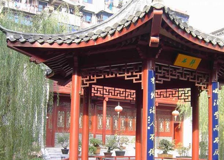 在被西化了的“小洋樓”和紅磚黑瓦的夾縫中,鐵硯山房這樣一座園林建筑更加顯得突兀。鐵硯山房始建于清乾隆年間。鄧石如一生浪跡江湖,乾隆五十九年(1794年)由武昌歸來,次年?duì)I建房屋,以清代兩湖總督畢源所贈(zèng)鐵硯命名曰“鐵硯山房”,山人親書匾額懸于門前。
