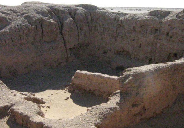 甲渠候官遺址俗稱破城子,位于額濟(jì)納旗南24公里,納林、伊肯河之間的戈壁灘上。為漢代居延都尉西部防線甲渠塞之長——甲渠候駐所。發(fā)掘前,遺址大部分為砂礫掩沒。往西300米,南北排列“一”字形烽燧和雙重塞墻遺跡。