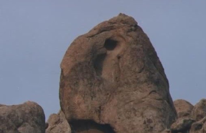 腳下的沙原不時(shí)裸露石頭的底色,一塊塊突起,應(yīng)著蒼天。這就是神石溝的石齦。石頭上凹陷的地方汪著雨水,水里流走著藍(lán)天白云,微風(fēng)掠過(guò),水汪里蕩開(kāi)幾紋水波,白云藍(lán)天在水汪里褶皺。突然內(nèi)心深處生出來(lái)想喝這些雨水的欲望,很強(qiáng)烈,意識(shí)決定行動(dòng),身子俯下,水影里的藍(lán)天白云被擠走,才發(fā)現(xiàn)水的底部竟然有幾粒被雨水浸泡的膨脹了,還泛著微白的羊糞蛋。它們的出現(xiàn),戛然遏止了我的欲望。 神石溝就到了,反映在腦際的依然是神奇,是現(xiàn)實(shí)的神奇,乃至驚異。我斷然決定這不是“溝”,是“海”,是石頭的海洋。看那爿爿石浪,簇?fù)碇碇拇蛑肯蛱祀H。再看石海憤怒了,驚濤萬(wàn)丈,拔石成峰;時(shí)而舒緩,平和,鼓蕩著浪花,一浪推一浪,一浪裹一浪。