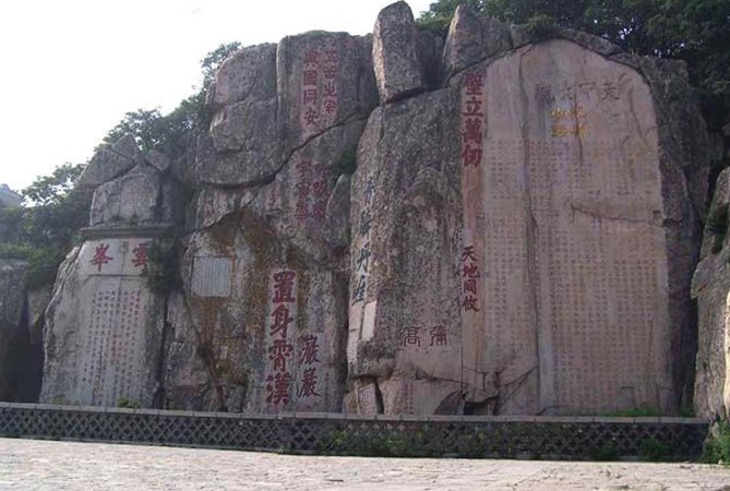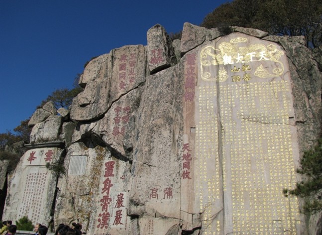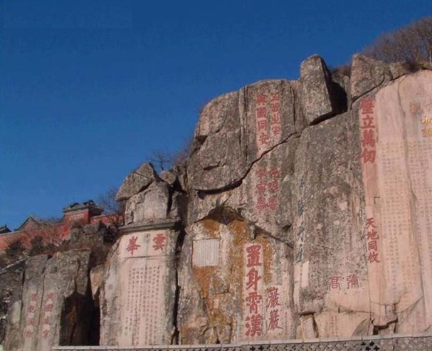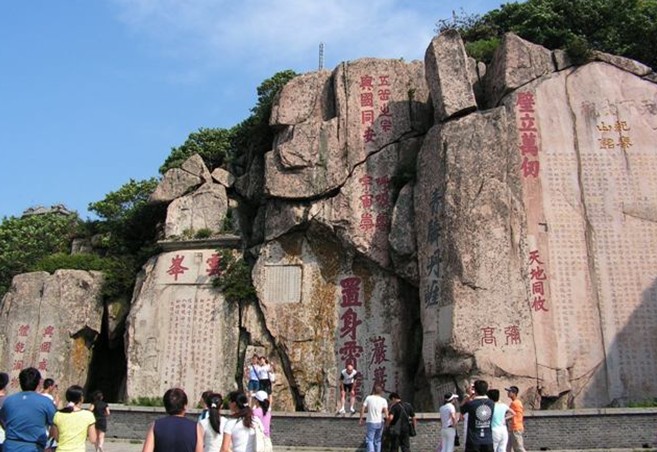 大觀峰和云峰上題刻遍布,版權所有山東聊城聊之旅國際旅行社有限公司,轉載必究!重重疊疊,能識者80余處。“天日蒼茫”、“呼吸宇宙”、“置身霄漢”、“青碧丹崖”等大字與《紀泰山銘》輝映;唐劉仁愿、宋趙明誠、元徐世隆、明朱衡、清阮元及施閏章等歷代名流題刻歷歷在目。