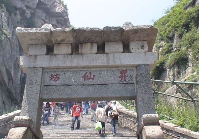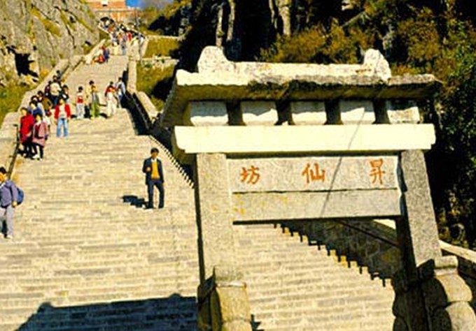 升仙坊位于山東省泰山中路緊十八盤的起始處,為兩柱單門式石坊,額題楷書“升仙坊”。此處山勢陡峻,懸崖峭壁,上臨岱頂天庭,咫尺仙境,似有飄然升仙的意境,故名“升仙坊”。游人至此小憩,每每浮想聯翩。回視山下,常有騰身云霄之感,舉首仰望,南天門近在眼前,奮力攀登,岱頂在望。