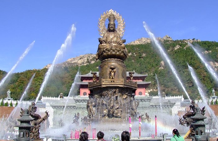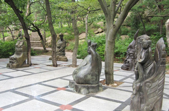 位于張保皋南面的赤山明神銅像,高33.8米,總投資4500萬元,占地十二萬平方米。由大明圣境、仙人棋盤、東峰觀景臺、明神銅像及其它附屬建筑組成。大明圣境牌坊題名由著名書法家劉炳森題寫。牌坊南墻的青銅浮雕“眾仙朝神”眾仙列班朝拜,聽候赤山明神號令的情景。“仙人棋盤”由“神閑氣定”、“運籌帷幄”、“成竹在胸”、“觀戰之悅”、“駕鳳臨仙”、“悔恨難解”六個人物小品組成。版權所有山東聊城聊之旅國際旅行社有限公司,轉載必究!主要內容是各路神仙會聚赤山對弈的場景。人間的棋局,竟然讓天上的神仙情不自禁,于是,喜怒哀樂溢于言表,性情體態栩栩如生。“赤山明神”銅像高58.8米,面朝浩瀚的黃海,雄壯威武。赤山明神亦稱赤山神,相傳明神本相出于赤山紅門洞。赤山明神威鎮四海,法力無邊,守護鄉土,福佑大千,功德無量,乃華夏北方庇佑之神。始皇并六國,于贏政二十八年(公元前219年)東巡成山,以求長生不老之藥。途大病,李斯遽祈明神,旋無恙。唐高宗顯慶五年(公元660年),唐政府幫助新羅人(今韓國)打敗高麗和百濟,統一朝鮮半島,自此唐和新羅非常友好,關系密切。很多新羅人來到唐朝學習,做官,做生意,出苦力,當兵,做船工,當奴婢,有的長期居住在中國,主要分布在東南沿海和大運河沿岸地區,特別是和新羅僅一海相隔,相距不足200海里海上交通樞紐赤山浦(今石島灣),居住的新羅人就更多了。法華院宣講《法華經》時,“四方眾信及有緣施主都會聽,道俗老少尊卑都是新羅人。”(據《入唐求法巡禮行記》一書)為了對新羅人進行管理,特設了“勾當新羅所”。新羅人除去赤山法華院參拜佛祖,祈求保佑外,也去紅門參拜赤山神。尤其在赤山法華院建立之前和拆毀之后,主要參拜的是赤山神,赤山神也就不分國界施恩于新羅,因此新羅人就把他當作自己的神。稱之為“新羅神”大韓民國文化部、海運航海廳、全羅南道韓國文化藝術振興院編著的《張保皋》一書中說:“有關日本九州博多太守府的史書記載,圓仁弟子按照宗師遺囑建立的比睿山赤山禪院里繪制的‘新羅神’臨近寺剎(例:圍城寺和三井寺)里供奉的新羅國的‘大明神’等有關記載,都明確無誤地說明了張保皋人把日本比睿山赤山禪院里供奉的‘赤山神’當作自己的神——‘新羅神’了。該書還說:“在博多太守府內,常駐有許多從事貿易的新羅人,而在此之前,就定居在九州一帶的新羅人,也多從事貿易業。”張保皋對日本的影響,在其后日益明顯,如前所述的赤山禪院比睿山周圍的寺剎里,供奉的象征著保護財富,帶來運氣,保護航海安全的“新羅神”(赤山神),說明新羅人以及張保皋所組織國防貿易船隊,是把“赤山神”當作自己神了。唐文宗開成三年(公元838年),東瀛天臺宗三世座主圓仁(慈覺大師)隨遣唐使赴唐求法數載,曾三赴赤山拜謁。歸途中,于滄海屢遭劫難,幸明神顯靈,方化險為夷,且保全經典數百卷。圓仁歸國,遂以赤山明神為天臺宗庇佑之神供奉,其后弟子秉承其旨意,于京都修一寺院,名之曰:“赤山禪院”。而后,赤山明神漸為東瀛等國所崇拜,乃至波斯、大食等區域。至今,日本、韓國等寺院仍多供奉赤山明神,以福佑天下,普渡蒼生。 據《后漢書》載,赤山明神是中國古代原北方系鮮卑族之保護神。版權所有山東聊城聊之旅國際旅行社有限公司,轉載必究!他不僅是中國民間的保護神,也是日本、韓國,甚至波斯、大食(阿拉伯)等諸多國家民間的保護神。尤其是韓國、日本的許多禪院里如今仍供奉著赤山明神。