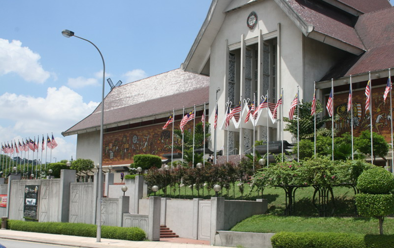 馬來西亞國家博物館(National Museum)位于屈佛街一座山丘的頂端,在湖濱公園南口東側(cè)為馬來高殿式建筑。 它是馬來西亞國內(nèi)最主要的博物院。現(xiàn)在的博物館是原來的老館-雪蘭莪博物館-意外被毀后在其舊址上興建而成的,1963年8月拉赫曼總理主持開幕儀式,對外開放。博物館有一個巨大的"米南加保"(menang Kaban)風格的屋頂,門前兩旁有水池,正門兩側(cè)有兩幅巨型壁畫,畫長35.1米,高6米。左側(cè)畫著馬來西亞各種手工藝品的制造過程,右側(cè)畫著從12世紀起到1957年馬來西亞獨立各個歷史時期的重要歷史性場面。