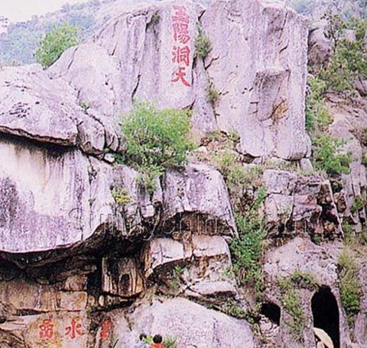 指玉陽(yáng)洞頂懸崖上“玉陽(yáng)洞天”四字石刻。
