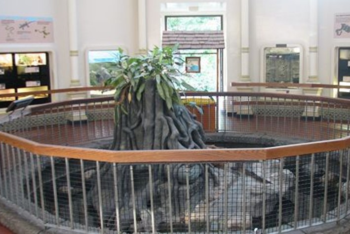 爬蟲園采納的是開放設計概念,飼養(yǎng)的園地都布置成為原始叢林沼澤河床,讓爬蟲有如回返自然生態(tài)環(huán)境,自由爬行或游水。而在不同角落或展覽館里,有15英尺長的大鱷魚、四腳蛇(大蜥蜴)、四方外觀的烏龜、超過百歲的老巨龜、有毒的眼鏡蛇、巨蟒、細如線般的青蛇、多色彩的壁虎、白里透紅的小青蛙等,此外,也有一個可讓游人與蜥蜴近距離對看或撫摸的開放式蜥蜴園。