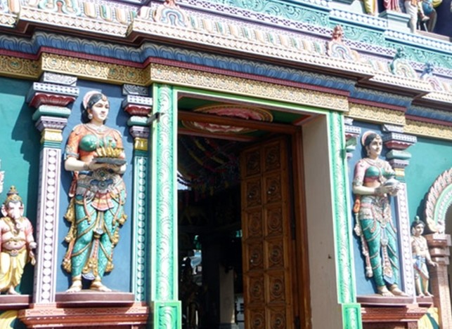 這座南印度風(fēng)格的神廟建于1859年,并在1983年重建。它的獨(dú)特之處在于屋頂鑲嵌的48塊玻璃板,它們的角度剛好能讓陽光從各方向照射進(jìn)來。丹達(dá)烏他帕尼興都廟歷來最熱鬧的時候是在大寶森節(jié)和九霄節(jié)。