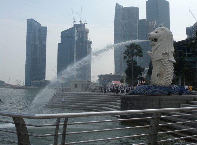這尊塑像除了紀念萊佛士本人,還有一層特別的含義。塑像基座的銅牌上銘刻著這樣一段話(英文翻譯):在這一歷史性地點,托馬斯.斯坦福.萊佛士爵士于1819年1月28日首次登陸新加坡,由此將一個小漁村的命運改寫為一個偉大港口和現(xiàn)代化大都會。簡單地說,套用李光耀評價孫中山的話就是“萊佛士,一個改變了新加坡命運的人”。這里就是萊佛士首次到訪新加坡的登陸地點,新加坡河邊又一個可圈可點和謀殺相機內(nèi)存的地方。身為偉大的歷史人物,萊佛士在河畔眾多高樓大廈的背景下顯得孤單、落寞而憂郁。歷史的河水向前,再向前,匯入海洋,無可逆轉(zhuǎn)。風云人物,英雄俊杰,雖然一朝風流,終究化為河邊的靜默雕塑。