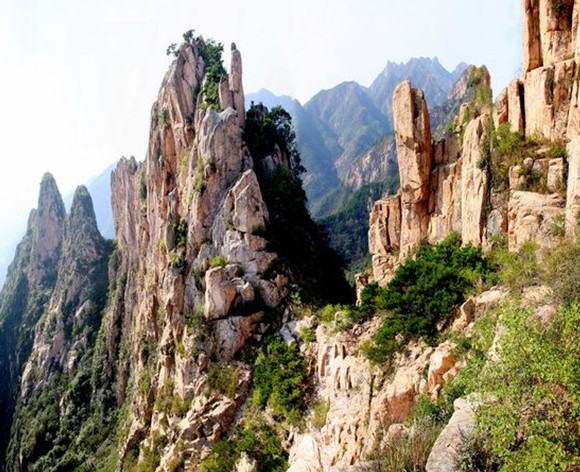 崮山奇峰怪嶺,崖懸壁峭,版權所有山東聊城聊之旅國際旅行社有限公司,轉載必究!崮頂高聳入云,四周常有云霧繚繞,故有“南崮北崮,隔天一步”之說。建國后封山育林,栽松植果,林地面積大增,喬木以黑松為主,隨著樹齡的增長,與崮山奇石相襯,觀賞價值在不斷提高。林海茫茫,山花漫漫,景觀引人入勝,于是每年春夏之時,游人絡繹不絕,已自發形成游覽景區。